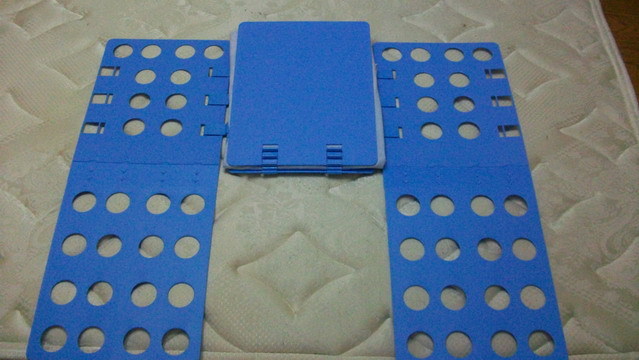 其實收納的精神就是分類跟整齊,這塊折衣板就是固定摺好衣服的尺寸,讓衣服疊起來或收起來時都一樣大小,自然看起來就很整齊了。不過這塊板子雖然任何SIZE的衣物都可以摺,但是板子大小好像是M尺寸的,不曉得身高180公分或XL尺寸的衣褲要怎麼摺,我的褲子都只要摺一個板寬了,那腿長的人摺起來不就跟個千層派一樣