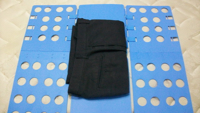摺完的成果,我覺得是因為褲子擺放的關係不對