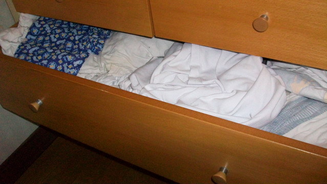 下層是冬天的衣物,比較厚,所以難疊(謎之聲:好想換一個櫃子啊)