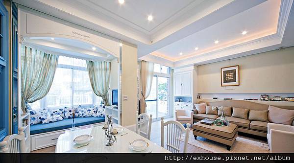 EasyDeco藝珂設計主持設計師表示,不同於歐式鄉村,美式鄉村常會混搭古典的元素,像是天花板及櫃體的線板、柱體連結的拱門及木作白色格子雙開門或拉門,結合古典的鄉村風一樣保有鄉村風明亮而溫暖的氛圍,但更優雅而有氣質。