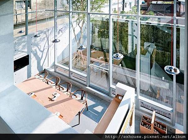 室內6坪不到的小建築,採用毛森江鍾情鑽研的清水混凝土打造,來自日本茶室的設計概念,低限創造大宇宙,小窗戶,低樓板,讓人以較低的視線高度觀看,身置其中不覺得壓迫反而感到謙遜,心情也隨著空間與光線營造的氣氛而沉澱平靜。另一棟20坪左右的房子,外觀採用天然石材,以一道旋轉梯貫串三樓,建築的一側奢侈的大片開窗,內外彷彿無界。兩棟建築在清水混凝土砌成的牆中,與外界隔開,進入一個由毛森江打造的第二自然,有了界線,保有了隱私與安全感,人在裡面才能全然放鬆,才能打開身體感官,去享受使用空間。此外,廚具、傢具都是毛森江設計請師傅做,小至衣架、板凳,大到廚房中島、餐櫃等,搭配經典Y Chair,呈現融合在地文化和人文的現代生活。