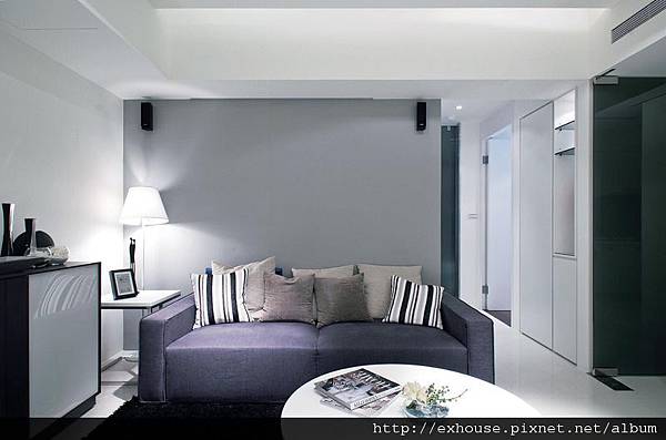 以白色為主的空間顏色搭配,表現出明亮乾淨的氛圍,而沙發背牆的牆面跳色處理,讓客廳擁有白色的潔淨卻又不失溫暖的空間感受。