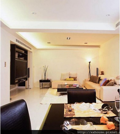 客廳空間以利落的線條呈現簡約的現代風格,以軟件佈置創造豐富的表情。