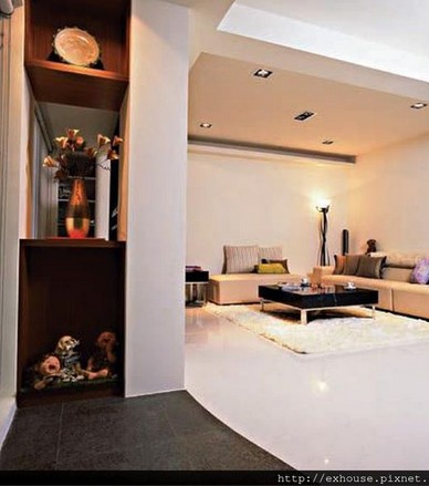 柱子原本是空間裡的一大問題,所在位置都很尷尬。設計師巧妙的利用柱子與牆面的距離設計成展示櫃,不著痕跡的融入空間之中。