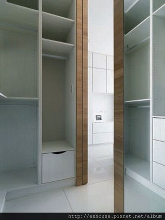 主臥動線規劃以二進方式,從更衣室進入主衛浴,各臥室及更衣室頂天大櫃體設計,發揮強大收納機能,結合系統櫃及木作,無論是抽屜、門片、及開放收納櫃,讓屋主輕鬆將所有衣物分門別類,拿取使用也更順手。