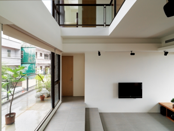 以退為進的挑空天井,以及大片開窗的設計,讓室內擁有充足的採光。