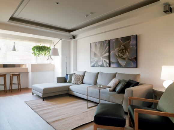 事先在沙發處下方規劃好電源插座位置,方便隨時使用,亦不造成視覺上的雜亂。