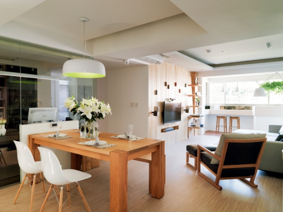 由於原本居住的房子太小,已經不敷使用,因此屋主決定換屋,搬到這間坪數夠大、採光佳、又有山景的10 多年老屋。先前的舊家因為漏水及壁癌嚴重,且空間小無法擁有書房,所以屋主希望新家不但要住起來舒適,還一定要規劃出一間書房,一圓之前未能實現的夢想。再來則是預算上的斟酌,因為費用超出屋主的預期,設計師於是決定捨棄一切不必要的設計,將重點放在需求大的收納上,減少裝飾性的材質以節省經費。入住後,屋主的感受就如同他們為新家取的名字「適廬」一樣,舒適又自在。