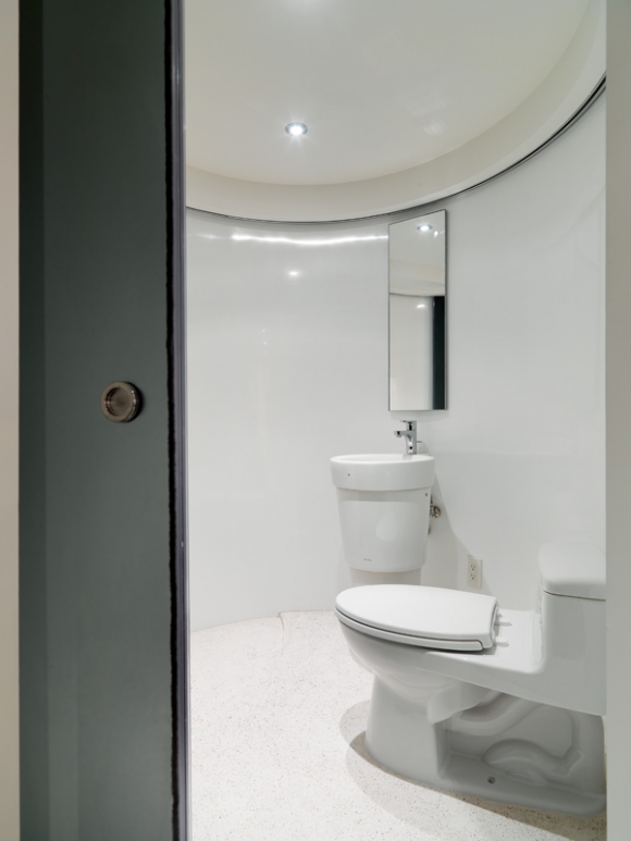 弧形和無斷層的浴廁,極致的簡潔,散發一種潔淨的高科技氛圍。