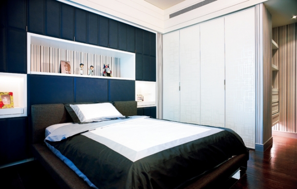 男孩房以較深的主牆顏色呈現出空間的使用者特質。
