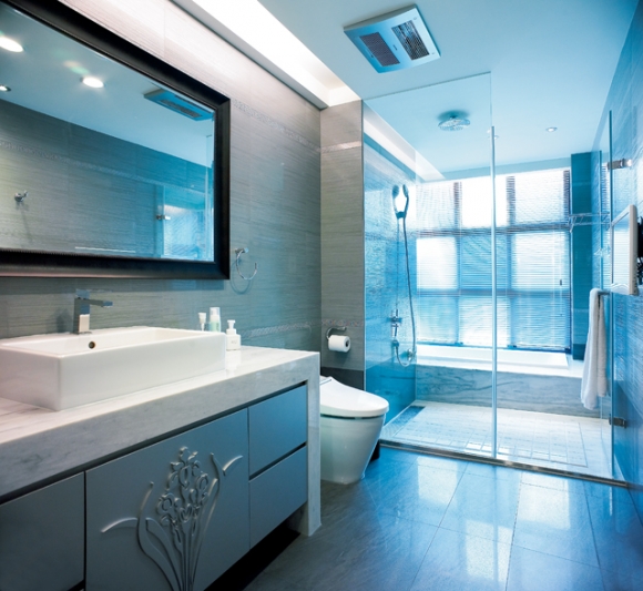 乾濕分離的衛浴設計,以機能考量為主,讓好清理的材質做為空間主角。