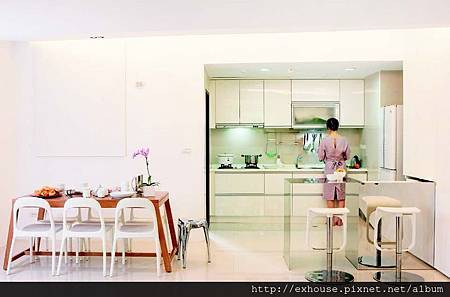 分享與尊重是任家傳統,從餐廚規劃也可看出端倪。開放式小廚房結合了客餐廳,營造出無拘無束的互動場域。