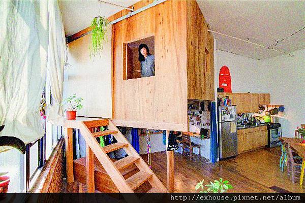 這棟位於紐約的房子,原本是紡織工廠的公寓住宅,是設計師本人Terri Chiao和她的朋友Adam所共同擁有,起初這只是他們居住與工作的地點,但隨朋友與客戶的到訪,興起他們動手改造空間的念頭。既然決定改造,那就來點不一樣的!於是,有別於一般設計師直接以牆面作為隔間的方式,轉而以建築形式做表現。21坪的空間裡,利用木結構搭配膠合板,創造出樹屋和小屋兩種獨立狀態,大玩建築實驗的同時,也各自擁有獨立的私密小天地。