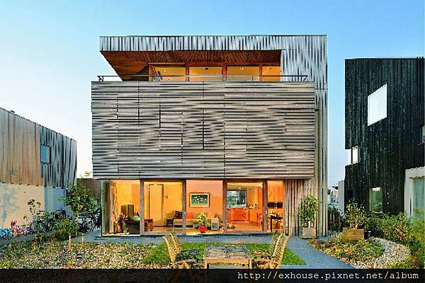 本案為一棟三層樓的房子,結合了住家與工作室,一樓作為公共區域、二樓為臥房區,三樓則包含了閱讀區和工作室。規劃這棟房子時,以永續、環保為主軸,因此在規劃上,搭配窗景與落地窗設計,引導自然光進而減少照明的使用,在建材使用上,盡量以木材為主,藉由木質本身的特性,阻隔熱源進入室內;另外室內空間也使用了隔熱玻璃與地熱系統,前者能隔絕熱能,後者則是減少能源耗損。
