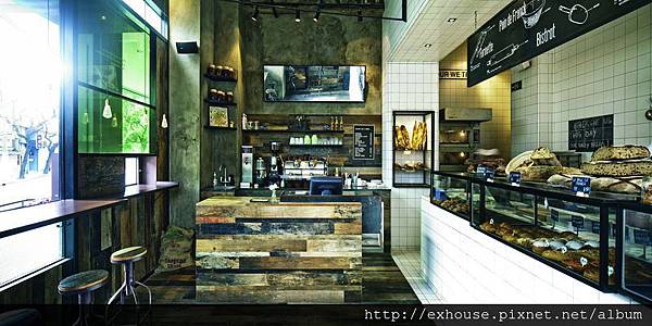 這是一間位於大陸上海武康路上的法國麵包咖啡坊,店面坪數只有30坪,格局擁有烘焙區、麵包展示區、櫃台,以及小小的咖啡座用餐區。如同麵包坊的名字「Farine」,和麵粉一樣,整體以最原始且最樸質的建材打造成散發一股獨特法式美學氣息的商業空間。再生木染色,創造空間層次如恩設計在空間設計上,思考到了整體建築的歷史背景、麵包坊主人除了想提供民眾一個真正的法式鄉村休憩空間之外,同時也想端出再道地不過的法式麵包小點。如恩設計讓空間回歸到最原始的樣貌,還沒進到麵包坊前,從外觀上就可以看出設計師用了許許多多的再生木,依照紋路漆上各式各樣不同的色調,再用玻璃以及鐵件打造出有歷史歲月的意象。而戶外用餐區,用同種木料延伸成桌椅,地板也鋪了一地的木棧板,強化從戶外看麵包坊的視覺。