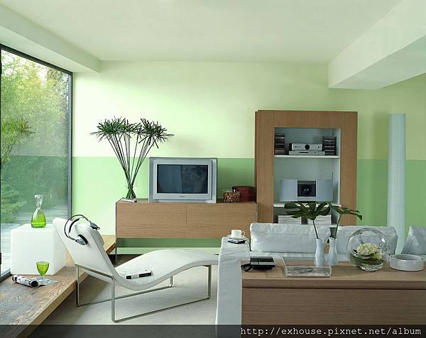 除了暖色系可以讓空間變得舒適溫暖,任何顏色只要帶一點白或灰,明度彩度適中的中間色調,也可以表現溫暖和諧的情境,適合大多數的空間型態。如偏中間色調的藍色一樣給人溫潤氣息。
