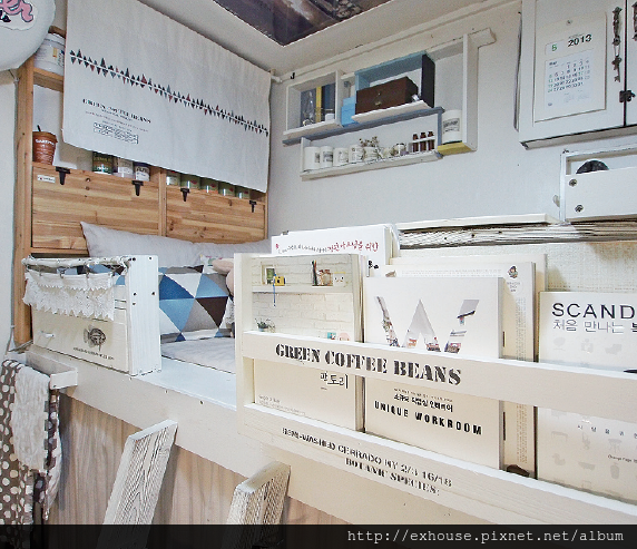 由於高架床占據了房間一整面的牆壁,所以不需要床頭櫃,但依然放了個12公分左右的淺櫃當床頭櫃,堆放那些呼喊無處可去的油漆們。這是個製作方法不難、木材花費也不高的節儉型收納櫃。只要仔細尋找,聰明的空間裝飾技巧,就會不斷出現在你面前。