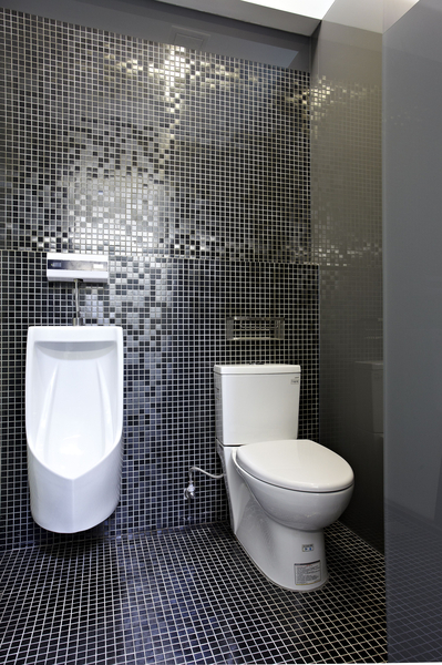 出乎意料之外,在超過四十年的老屋內會遇見充滿時尚元素的公共衛生間。比鄰而設的這二間廁所均採用深色馬賽克磚牆為背景,藉以突顯白色馬桶的潔淨質感,其中,靠窗的這間還參酌女主人意見在色彩上做些許變化。此外,對於難得的光線也充分利用、或加入植栽元素,這些小巧思都讓廁所設計更討喜。