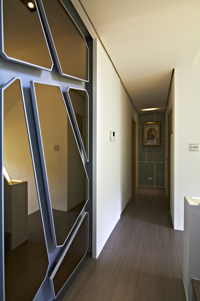 二樓被規劃卧房區,除了主臥室外,另有二間卧室預備作為一對兒女來渡假時居住的房間。在細部規劃上,不但每間都是套房式規格,擁有專屬浴室與對外窗景,另外在梯間或走道的設計上也不馬虎,除了將原本殘破的景象完全抹去,更加入現代舒適的視覺,展現出十足機能美感的個性山居。