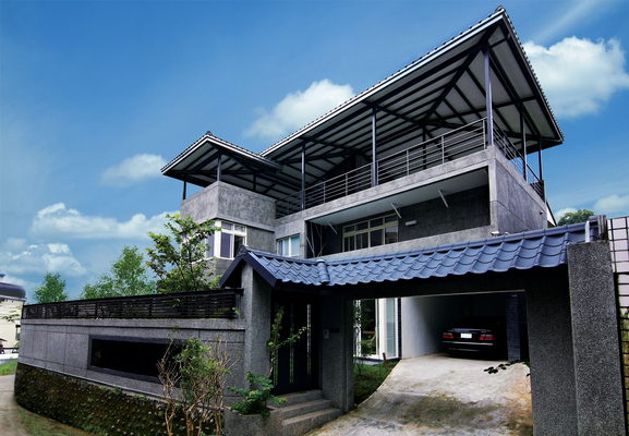 在外觀部分,以原來的建築外牆為雛型,設計出屋主喜歡的日式建築造型,除了在屋瓦部份利用黑色琉璃鋼瓦為建材,在牆面也敲掉原有磚牆及木作,改用抿石子的外牆設計,完美呈現古典美感、清麗、樸實的灰靜身影。