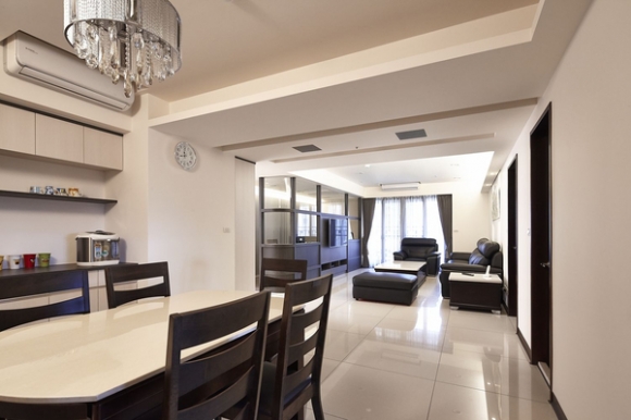 主要建材:系統櫃、玻璃、木皮、噴漆、烤漆磁性玻璃、壁紙、超耐磨木地板