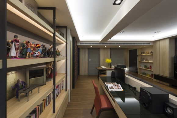 LOFT風格是大多數男孩的夢想住宅風格,業主有收集動漫卡通模型的喜好,希望能有充足的收納與展示空間,能與同好交流分享收藏品,而工業風自然質樸材質的背景,更能襯托出每個模型的人物個性與精緻度。
