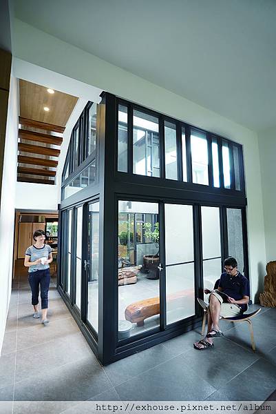 中庭空間雖限縮了客廳與餐廳面積,卻能運用孔洞效應引風入室,保持室內涼爽。