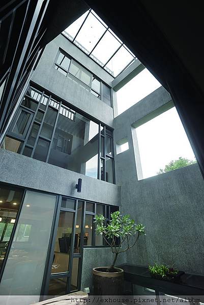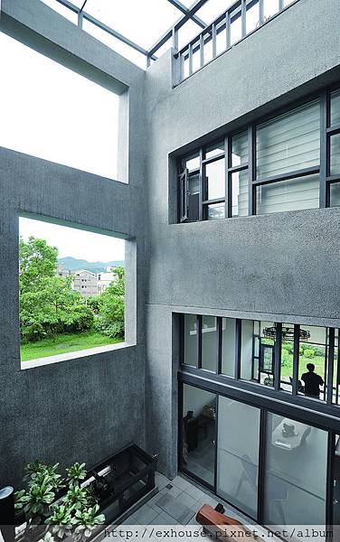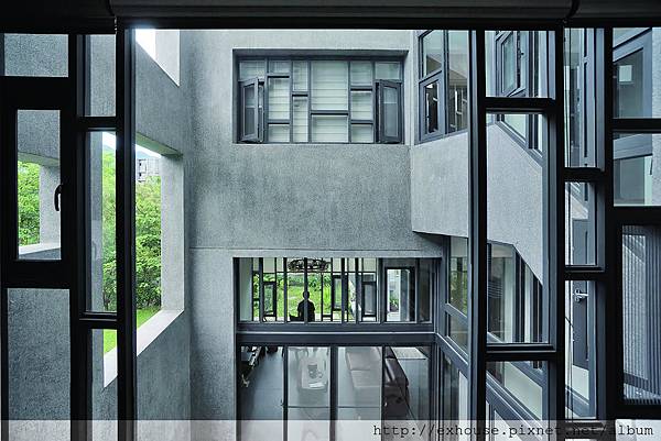 因為新店雨量多濕度高,所以採用開放式多孔洞的中庭,讓空氣通透,夏日不致悶熱,冬天也有良好的日曬基礎。
