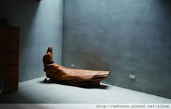 3 踏入地下室即被角落一隅的寧靜吸住目光,陽光透過邊隙灑進以水泥粉光為基底的空間,並放置一張藝術感十足的曲線實木椅,打造禪意。
