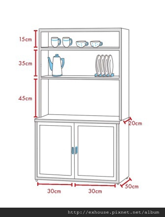 櫃體尺寸設計01餐櫃層板高度15 ~ 45公分都有