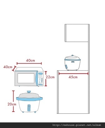餐櫃兼電器櫃,深度至少45 公分