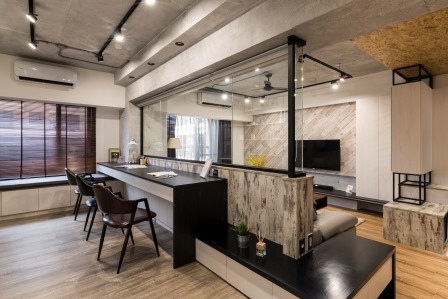 **TIPSTIPS混搭紅磚、鐵件、軌道燈以及多種樣式的木板材,創造出具個性的工業感;同時運用系統櫃體也呈現出不同以往的框架,滿足收納機能。