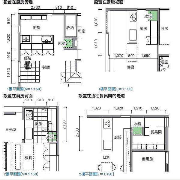 只要將冰箱門避免朝向客廳或餐廳就可以了,或者也可以在冰箱旁邊設置假牆遮掩視線。此外,若要將假牆跟冰箱切齊擺放時,一定要確定冰箱與假牆之間有足夠把門完全打開的間隙。