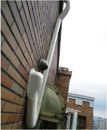 當冷氣的室外機裝設在頂樓或高處,冷媒管必須順著外牆往下進入室內的情況下,若是冷媒管的走線未拉好,往往雨水會順著冷媒管進入到室內,而造成外面下大雨,裡面下小雨的情形。