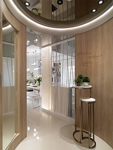 設計plus|玄關空間修飾為狐狀,去除稜角感,加以實木皮裝飾,