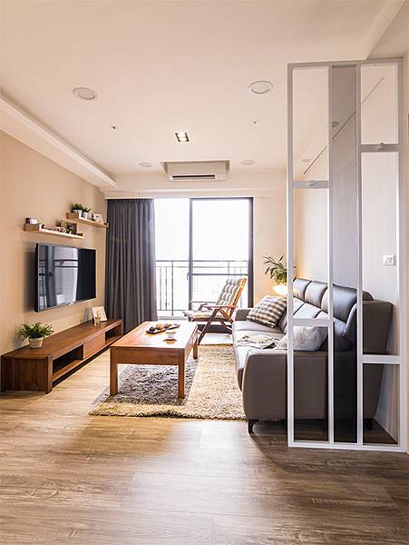 視覺入門見底的落地窗,形成穿堂煞的疑慮。設計師利用
