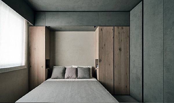 住家空間有限,保留客房與否一直是在格局規劃時最讓人猶豫不決的課題!其實透過櫃體、五金的整合,讓大部分時間閒置的床鋪,也能巧妙藏起來,而釋出的空間就成為全家人皆能隨性使用的多功能健身瑜珈區。然而除了隱藏直立上掀床外,其實非窗台的三面牆皆為櫃體,上方清水模假樑亦可供上掀收納,機能滿分!空間設計暨圖片提供_工一設計