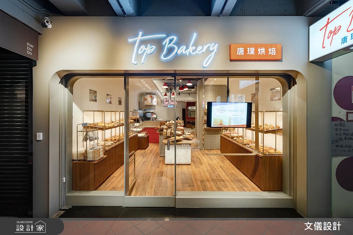 熱騰騰的麵包出爐囉!47 坪現代風烘培坊,迎賓櫃台及高腳椅區,以紅色意象大膽詮釋定調空間主色,不自覺挑起了顧客食慾,優雅大方的白色牆面,則象徵各式麵包的精緻口感,塑造享用麵包也能時尚又精緻空間概念!入口販售區純淨優雅的白牆,讓各式麵包大方陳列,搭配帶有弧度的木作、金屬層架,以視覺感染味蕾,增添麵包精