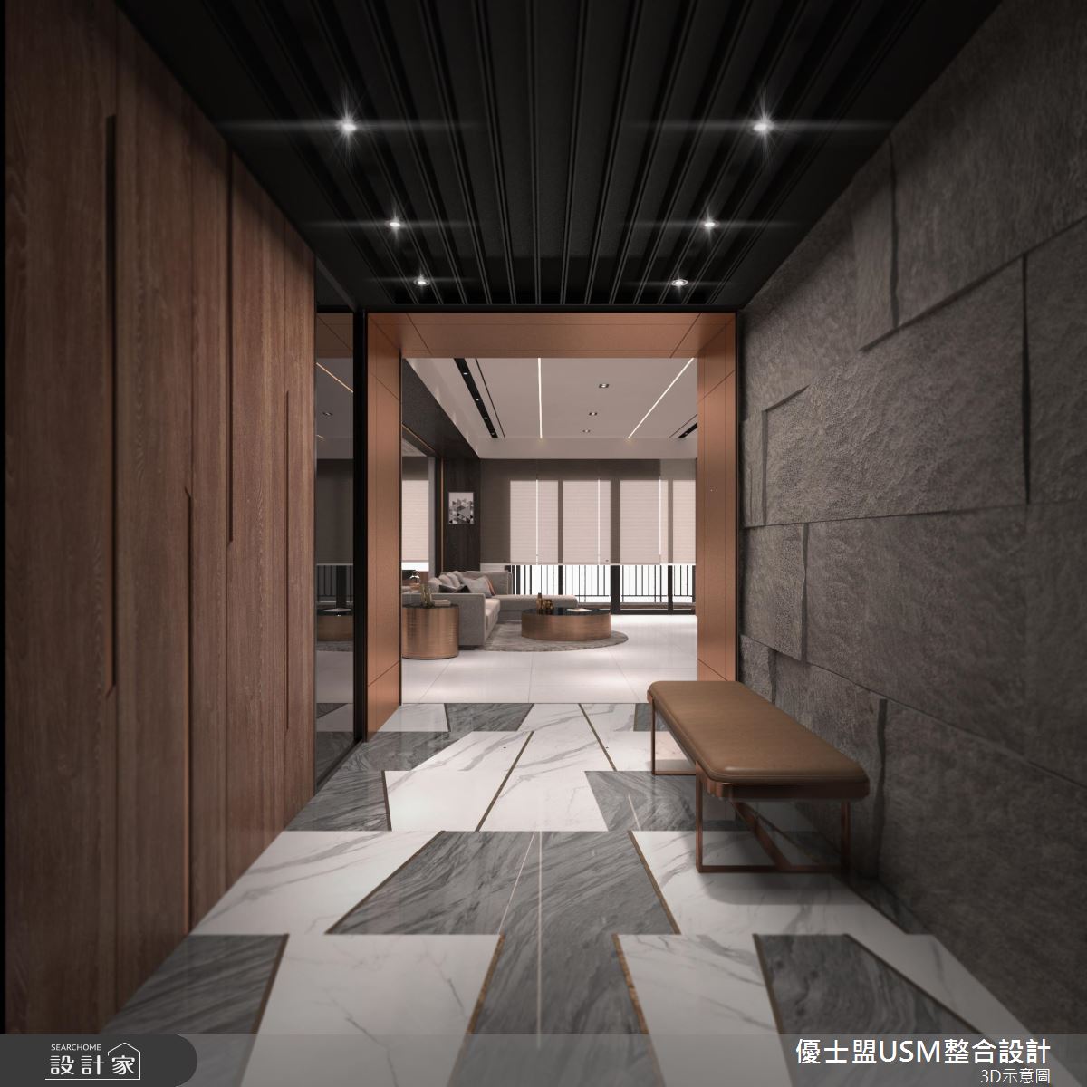 40 坪的 4 口之家,設計師依循屋主一家的需求,於居家內進行大量的材質混搭,並搭配細緻的律動線條,詮釋輕奢質感,同時為每個人打造專屬臥房,強調個人風格的展現,讓公私領域都各自精采,快跟著小編一起來看看吧!玄關區,地坪採用水刀拼花手法處理,開啟精采的入門風景;公領域,刻意在家具細節處使用帶有香檳色與