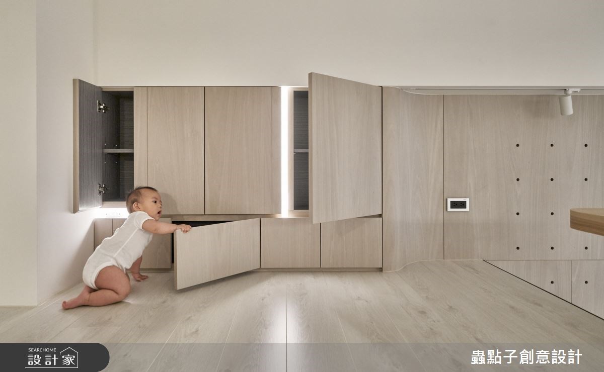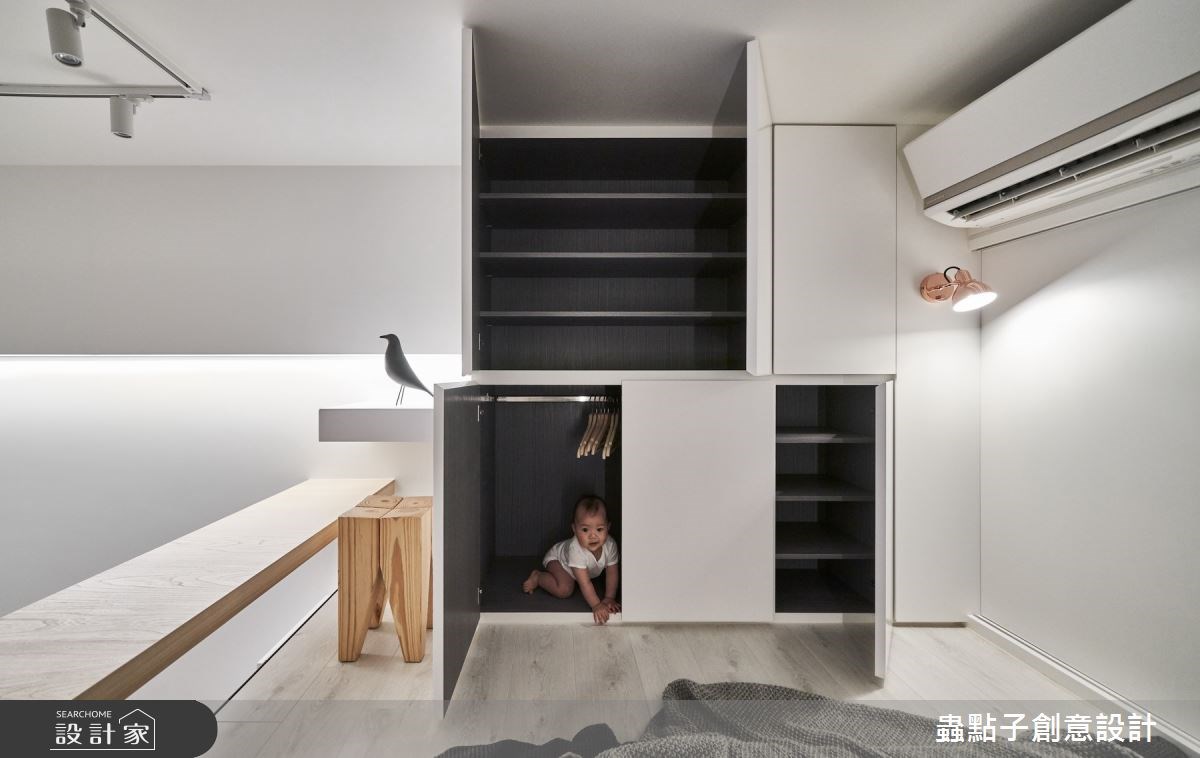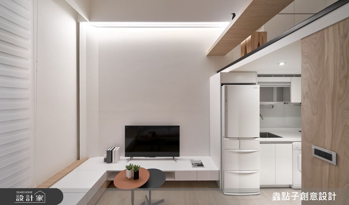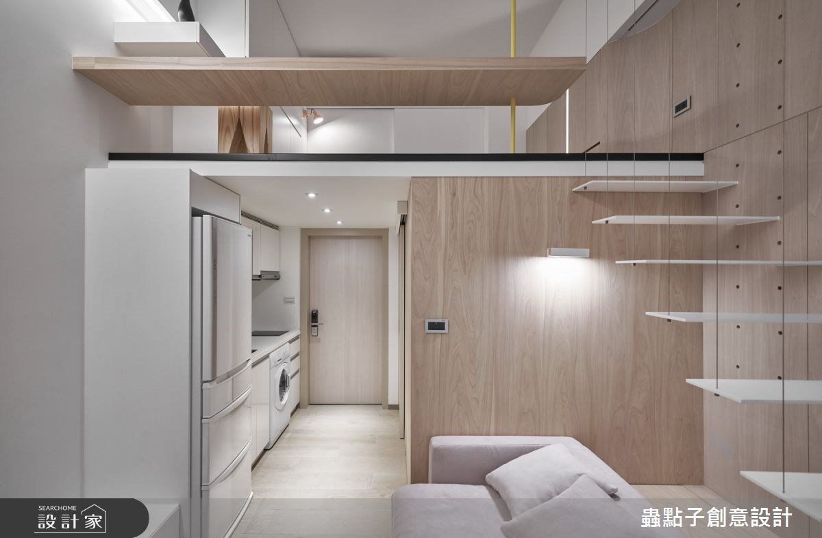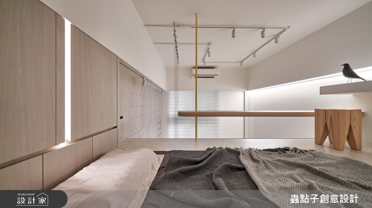 只有 5 坪大的迷你宅,因為屋主長期在國外工作,希望回到台灣有個能夠放鬆的地方,因此蟲點子設計以簡單溫暖的基調為主軸,並運用設計巧思讓極小坪數能發揮最大功效。