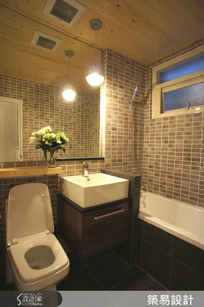 浴室雖小,但洗手台正好可區分浴缸和馬桶,讓空間規畫更符合使用需求。