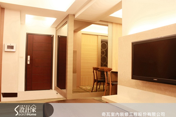存款不夠買豪宅,又嫌家裡太小,想讓它變成無限大嗎?有了鏡子,就能辦到!為了讓空間有放大作用,從玄關進門左側篩開始至餐廳壁面及客廳沙發背牆,都使用茶鏡裝飾,讓人走進屋內產生延伸視野效果,擴張空間感,無形中小小的家就變大了!