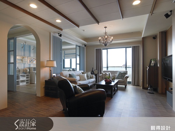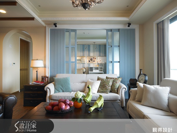 相較歐式鄉村風,美式鄉村風更顯得細緻優雅,本案在配色上游淑慧設計師使用了牛奶白色與淺藍柔和色彩,色調的柔和反而造就出一股清新不做作的感受,以明亮大方的呈現,揭開美式鄉村風格給人的第一印象。另外在線條呈現上,必備的拱門,搭配簡單的幾何造型與線條,分別散落於裝飾、門窗上,在在加強了清新舒爽的居家感受。