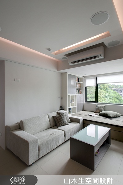 小坪數空間首重空間放大及收納設計的規劃,在這個案例中,設計師以明亮的白色、淺灰色當作空間主色調,和諧統一的色系佈滿天、地、壁,以及傢具,讓整體空間無形反射出透亮放大的空間感。
