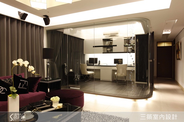 書房以清玻璃隔間,圓角設計讓隔牆看來不會硬梆梆。