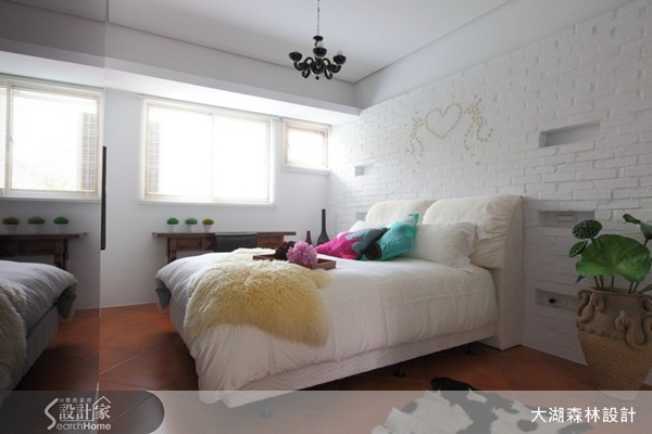 臥房使用同樣的文化石與復古地磚以呼應整體空間的風格設計。