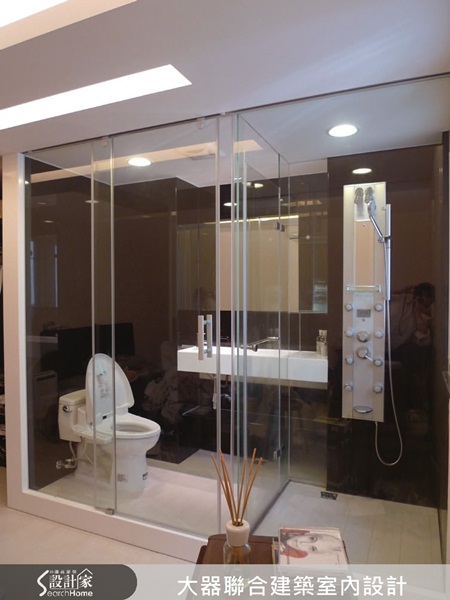 衛浴空間常使用玻璃材質,除了展現清透明亮,另外還有模糊內外界限的作用哦!像是專屬主臥的衛浴,就利用玻璃材質來切割淋浴區與馬桶區,空間不因切割而亂了調,反而還造成視覺延伸,互為彼此景致的效果。