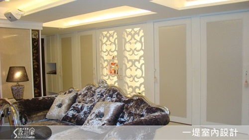 以 客廳的設計而言,為本案的規畫重心,此處不但是一家人團聚的空間,也是招待訪客的場所,藉由帶有古典風格的家具配置,搭配上雕花的裝飾設計如鍛鐵隔屏,華 麗而富貴氣的風格嶄露無遺。在本案中,設計師把多年的老屋,變成完美全新的奢豪大宅,打造出如招待所般奢華的居住空間。