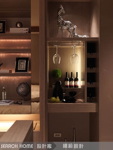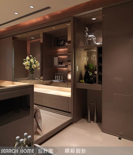 櫃體設計搭配茶鏡,簡單而又富有視覺效果。