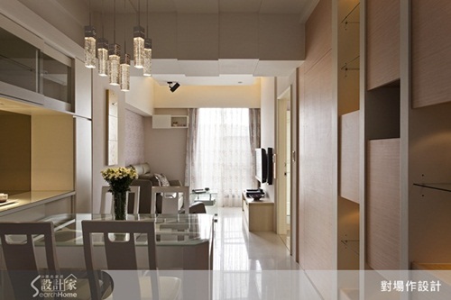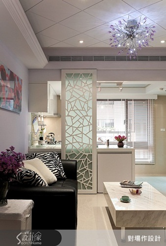 玄關的天花板以菱型線條切割出時尚感,看著看著,感覺整個客廳都寬闊了起來!搭配華麗的紫色水晶吊燈以及一幅足以畫龍點睛的掛畫,以視覺藝術勾勒出典雅風格!